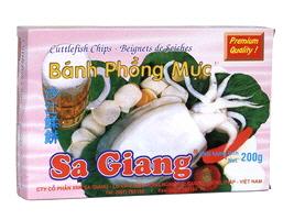 Tintenfischkräcker, Ungebackene Tintenfischkräcker von SA GIANG Brand, Inhalt 200g, Hergestellt in Vietnam, vietnamesische ungebackene Tintenfisch Chips